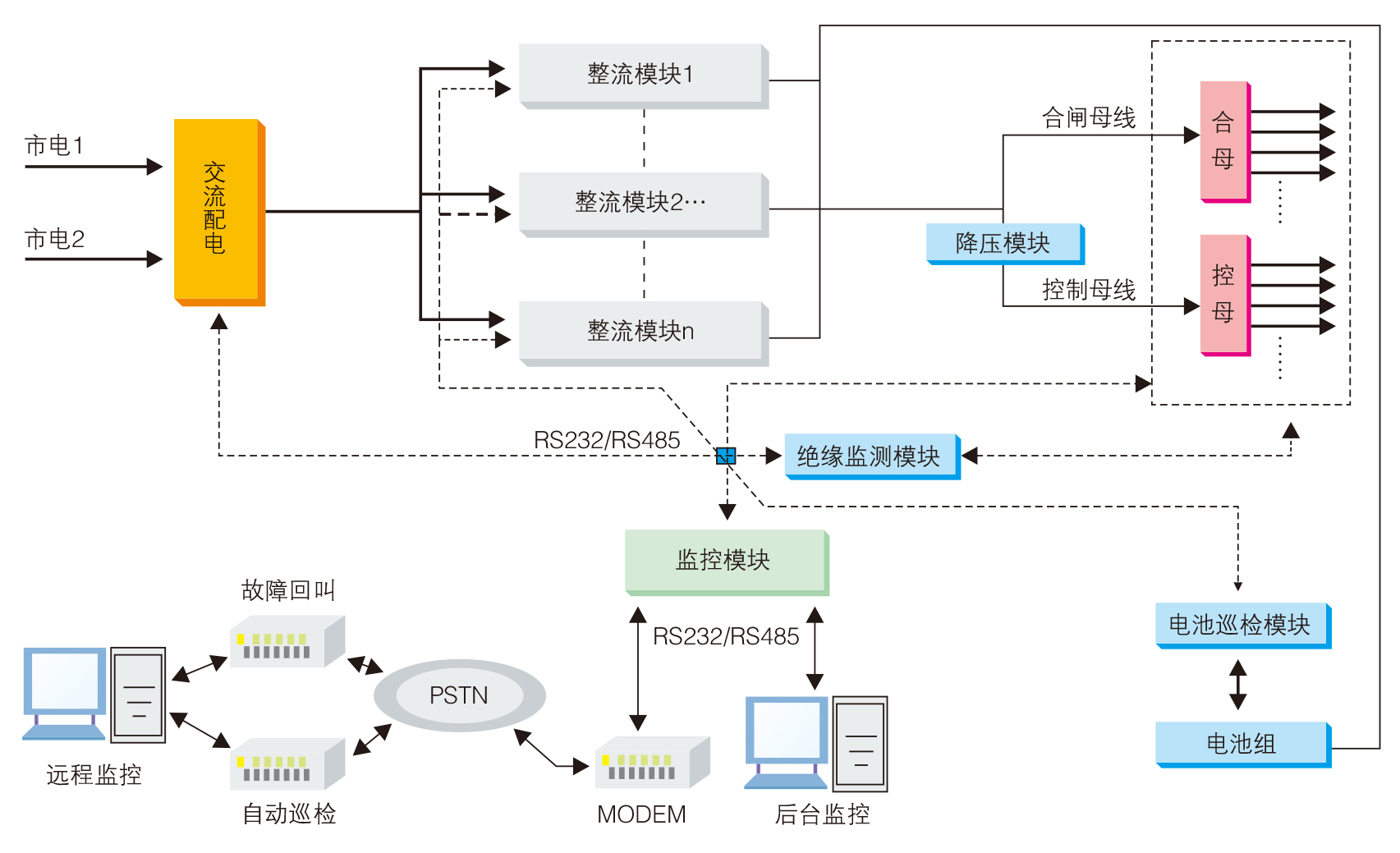 8、采用以微處理器為核心的集散式監(jiān)控系統(tǒng),模塊化設(shè)計,實施對電源系統(tǒng)全方位的監(jiān)測和控制以及電源系統(tǒng)的“四遙”及無人值守。
