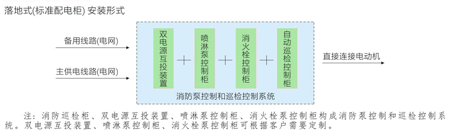 消防巡檢成套柜(含: 自動(dòng)巡檢控制柜、雙電源互投裝置、噴淋泵控制柜、消火栓泵控制柜)作為消防管網(wǎng)供水專用設(shè)備,與自動(dòng)控制消防泵組配套,實(shí)現(xiàn)同機(jī)聯(lián)動(dòng),廣泛應(yīng)用于油庫(kù)、碼頭、電廠、化工等行業(yè)自動(dòng)消防滅火系統(tǒng),和適用于多層及高層各類民用建筑及公共建筑的消防栓給水系統(tǒng)和自動(dòng)噴淋滅火系統(tǒng)等各