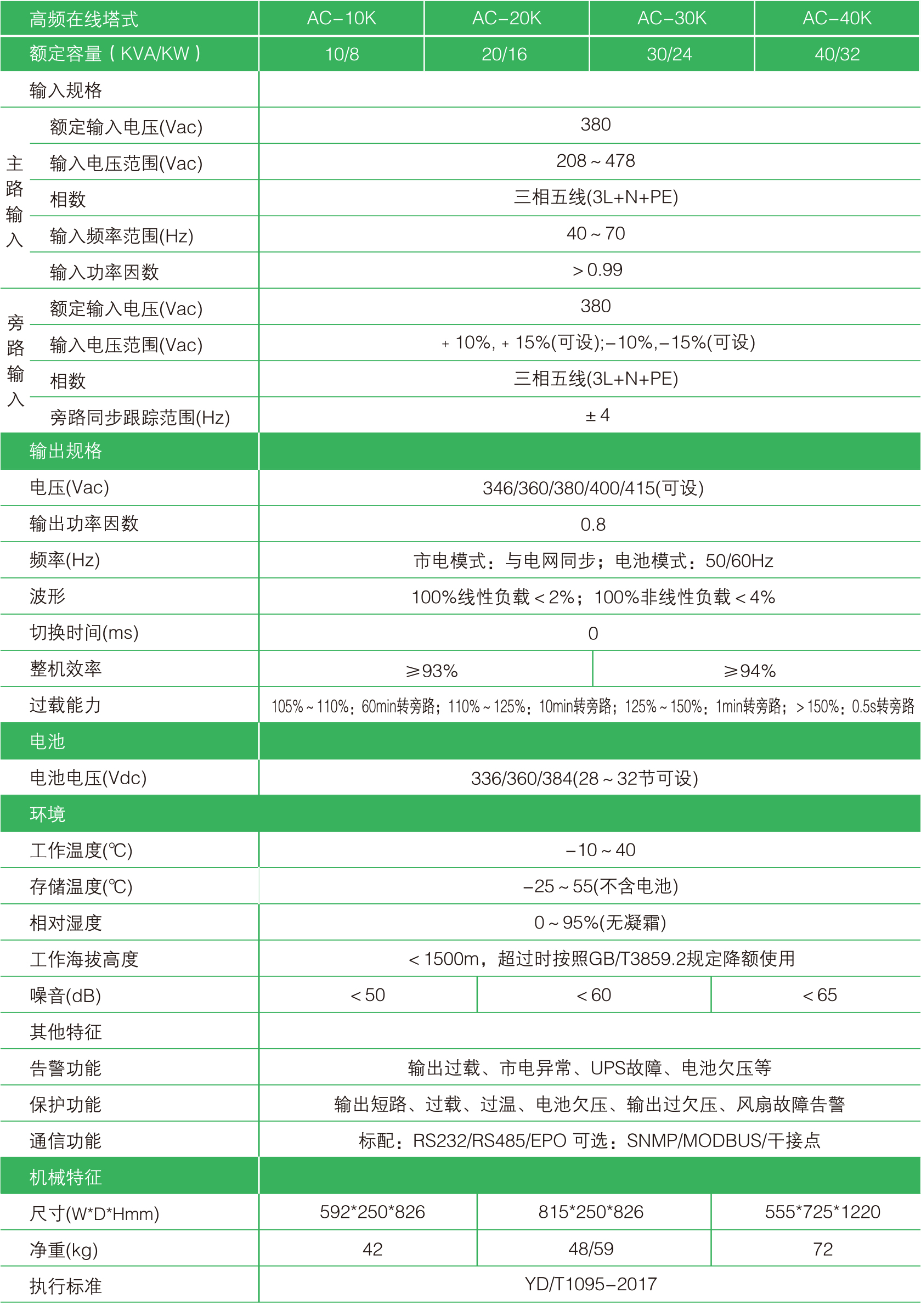 高頻中功率UPS采用純在線式雙轉(zhuǎn)換結(jié)構(gòu)和先進的DSP控制技術(shù),配合使用大功率器件IGBT及SCR,在穩(wěn)定、先進、高效的技術(shù)基礎(chǔ)上,設(shè)計出的集數(shù)字化、信息化、網(wǎng)絡(luò)化為一體的大容量正弦波在線式高智能型UPS。應(yīng)用領(lǐng)域:中小數(shù)據(jù)中心、網(wǎng)絡(luò)管理中心、企業(yè)服務(wù)器機房。