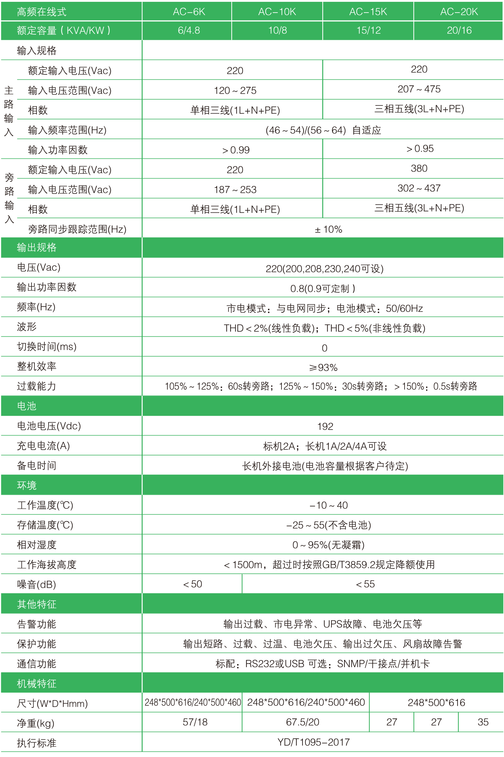 UPS技術(shù)參數(shù)6-20KVA(高頻在線式三進(jìn)單出)