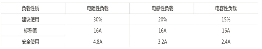 控制安全系數(shù)是指工作電壓(電流)/吸合接通負(fù)載時的電壓(電流),如果在標(biāo)稱值下使用智能照明模塊,是不可靠、不安全的;環(huán)境溫度升高或處于振動、浪涌沖擊條件下,將使繼電器觸點使壽命減少,根據(jù)負(fù)載容量大小和負(fù)載性質(zhì)(阻性、感性、容性及馬達(dá)負(fù)載)確定參數(shù)(容量值)十分重要,用戶可參考照下表根據(jù)實際電流、負(fù)載性質(zhì)選擇設(shè)備。